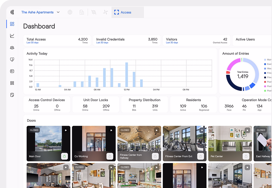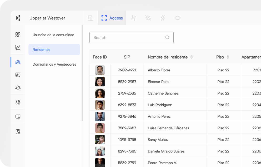 Access conecta todos los puntos de ingreso como cerraduras, portones y lectores faciales, a una plataforma que centraliza permisos, registros y eventos en tiempo real.